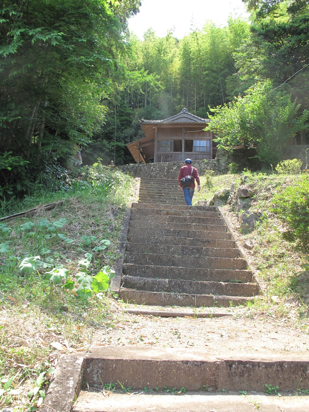 写真の階段は中段から上の部分です。鳥居から見上げたらずいぶん高く見えます。お年寄りの集団みたいな一行ですから、下で待っているという人もいましたが、私は写真を撮らないことにはここまで来た甲斐がありませんので、ゆっくりと登り何とか写真を撮りました。1対2体です。